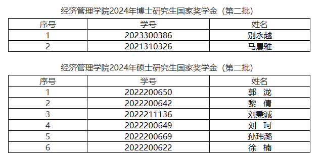 根据财政部、教育部、人力资源社会保障部印发《关于调整高等教育阶段和高中阶段国家奖助学金政策的通知》(财教〔2024〕181号),《关于做好2024年秋季学期普通高校国家奖助学金工作的通知》(教助中心〔2024〕31号)及我校《英国威廉希尔唯一官网研究生国家奖学金管理办法》(西交校研[2022]18号)等文件精神,英国威廉希尔唯一官网参照《英国威廉希尔唯一官网研究生国家奖学金评选实施细则》,本着公平、公正、公开的原则对第二批提交申请的研究生进行了资格审核、公开差额答辩环节,按学校第二批下拨指标最终确定英国威廉希尔唯一官网2024年研究生国家奖学金(第二批)获奖名单。现公示如下: