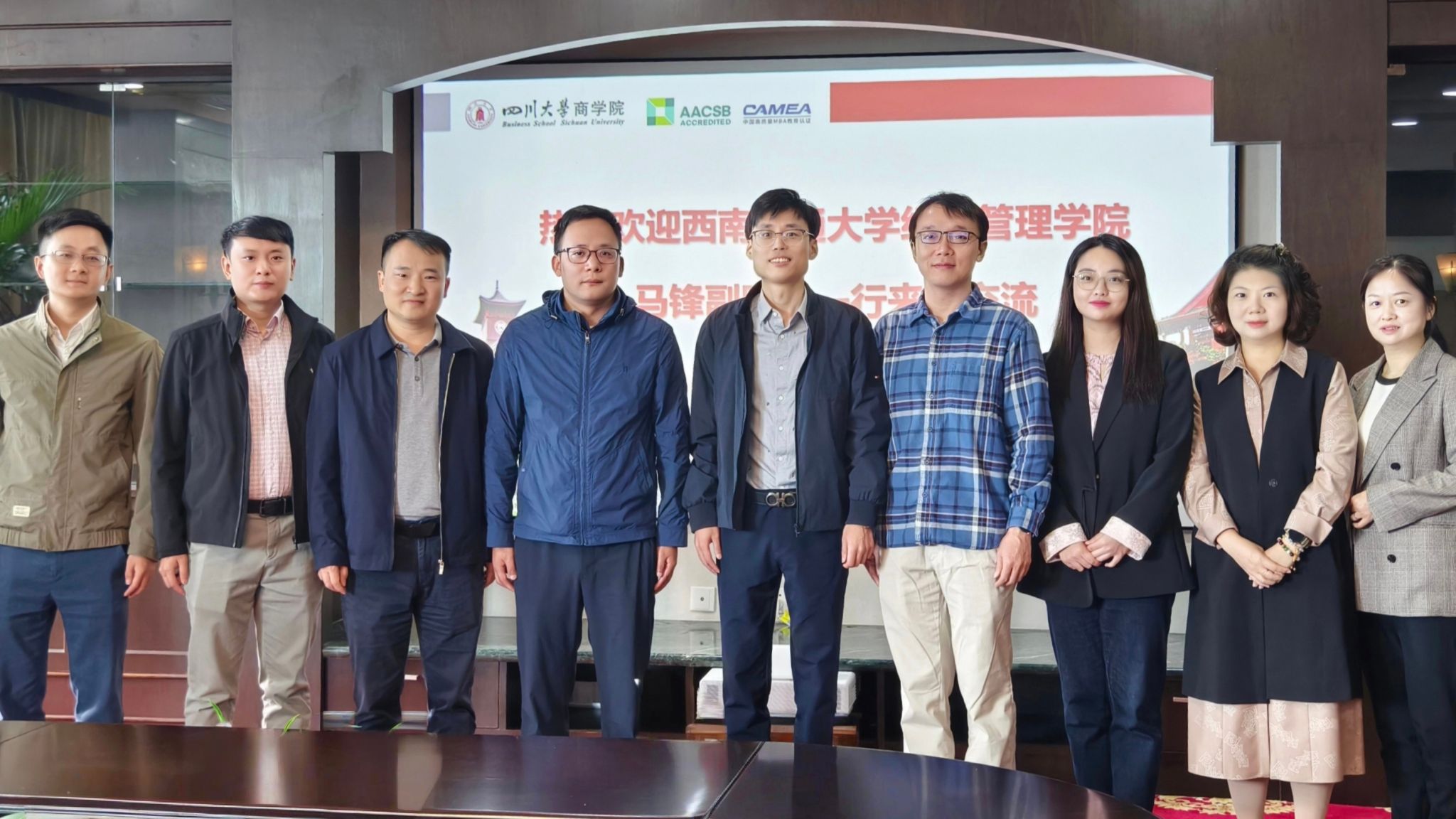 为进一步优化博士研究生培养工作,搭建人才梯队及科研平台,促进学院学科建设,10月9日上午,由英国威廉希尔唯一官网马锋副院长带队,研究生教育中心主任耿维、人才秘书陈丹、科研秘书李堃堃、学科秘书杨文敏一行前往四川大学商学院进行调研。