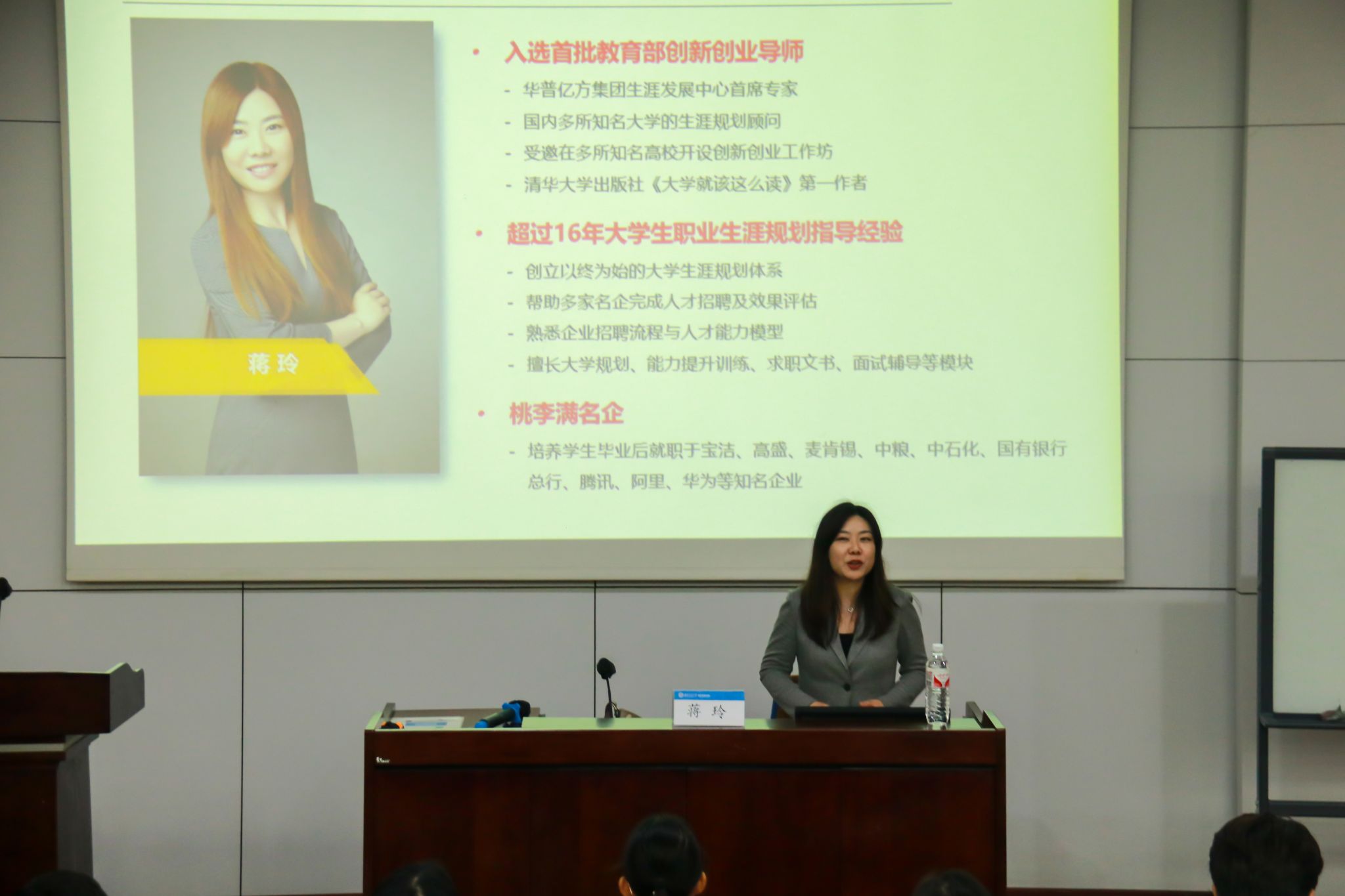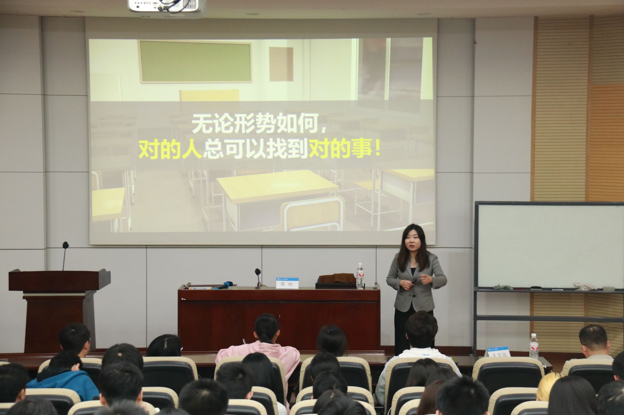 本次讲座,蒋玲着眼于当今大学生升学就业的难题,用具体数据展示了大学生考公、考研、留学、保研、求职的现状,用典型案例说明提早进行职业规划的重要性,并从六个方面引导新生如何进行大学生涯规划。关于如何走出就业和升学困境,蒋玲提出,新生要做到“以始为终做规划,提高核心竞争力,学业职业两手抓”,用科学的方法进行组合规划,以达到超出预期的效果。