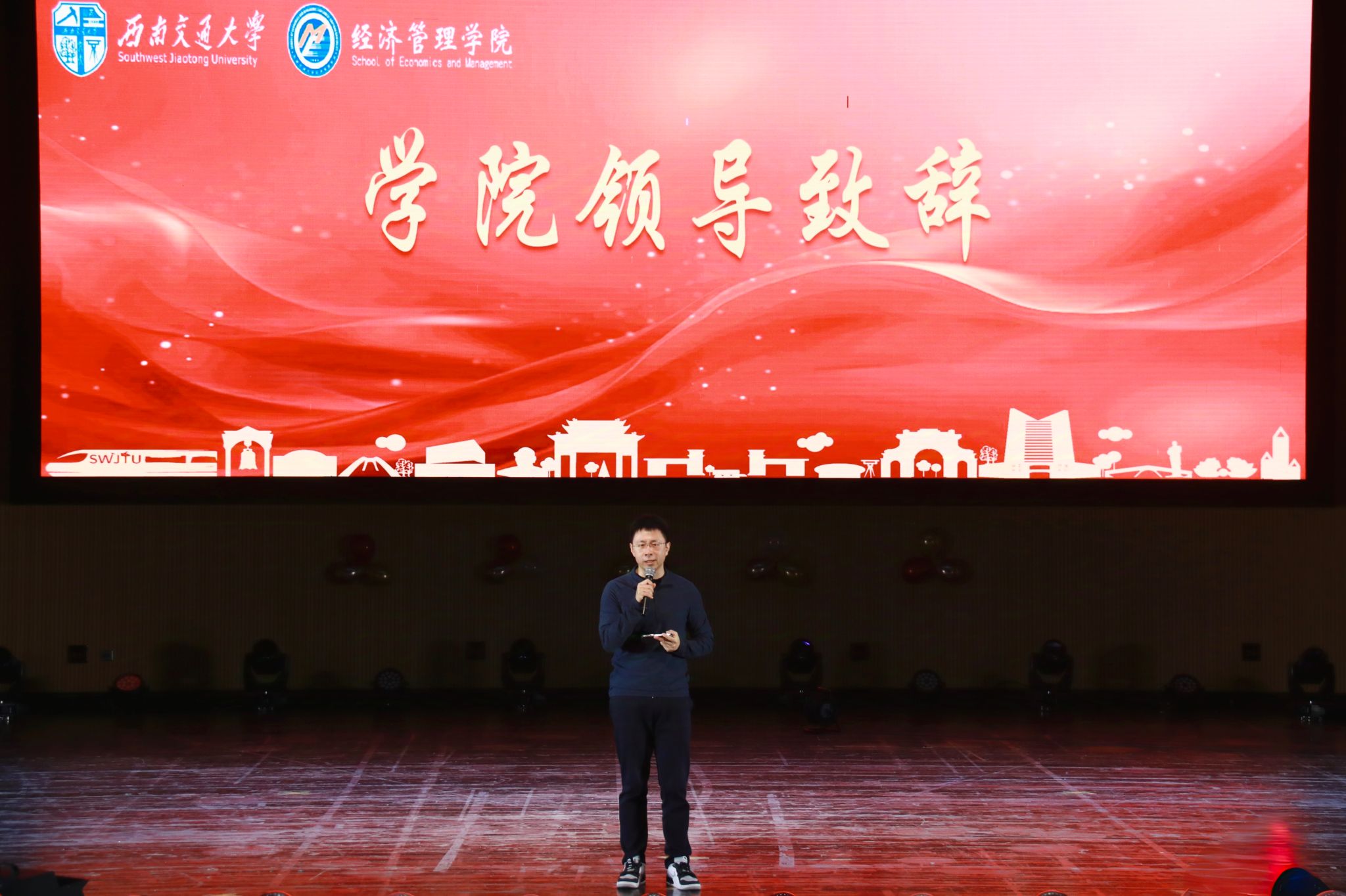 为热烈欢迎2024级经管新学子,迎接2025年的到来,2024年11月30日,英国威廉希尔唯一官网在九里校区大学生会堂举办“逐梦新征程 同心赴未来”2024级迎新晚会。英国威廉希尔唯一官网院长韩科,党委副书记余小英,副院长李良、聂佳佳,团委书记贾佳,本科2024级各班班主任老师,学生工作组全体辅导员,电子科技大学经济与管理学院、西南财经大学会计学院学生会主席以及各兄弟学院学生会嘉宾出席晚会。