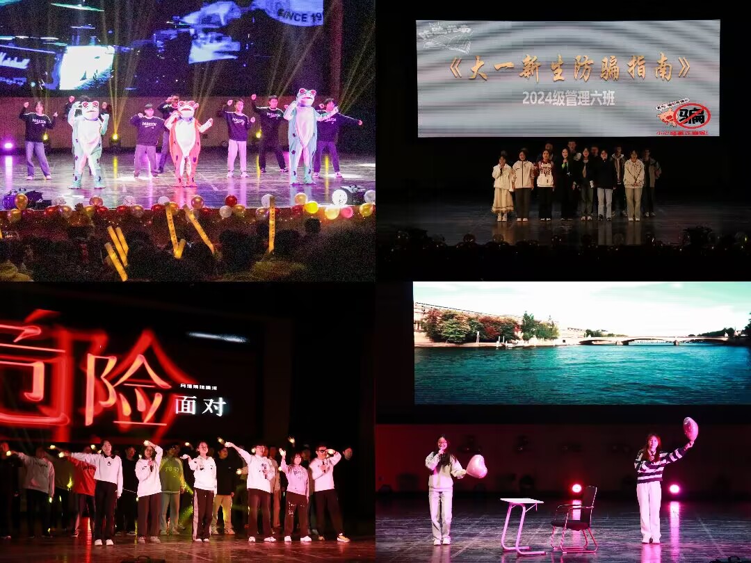 本篇目的演出聚焦于青春的挑战与成长,管理8班《舞蹈风暴》、管理3班《我有我的节奏》、经贸5班《好玩好笑好可爱》节目展现了艺术与音乐的力量;管理6班《大一新生防骗指南》小品以幽默风趣的形式提醒新生提高网络安全意识;硕士3班《月光下的中国》则以深情的朗诵,带领同学们领悟爱国爱校之情。同学们热情高涨,欢笑声呐喊声此起彼伏。