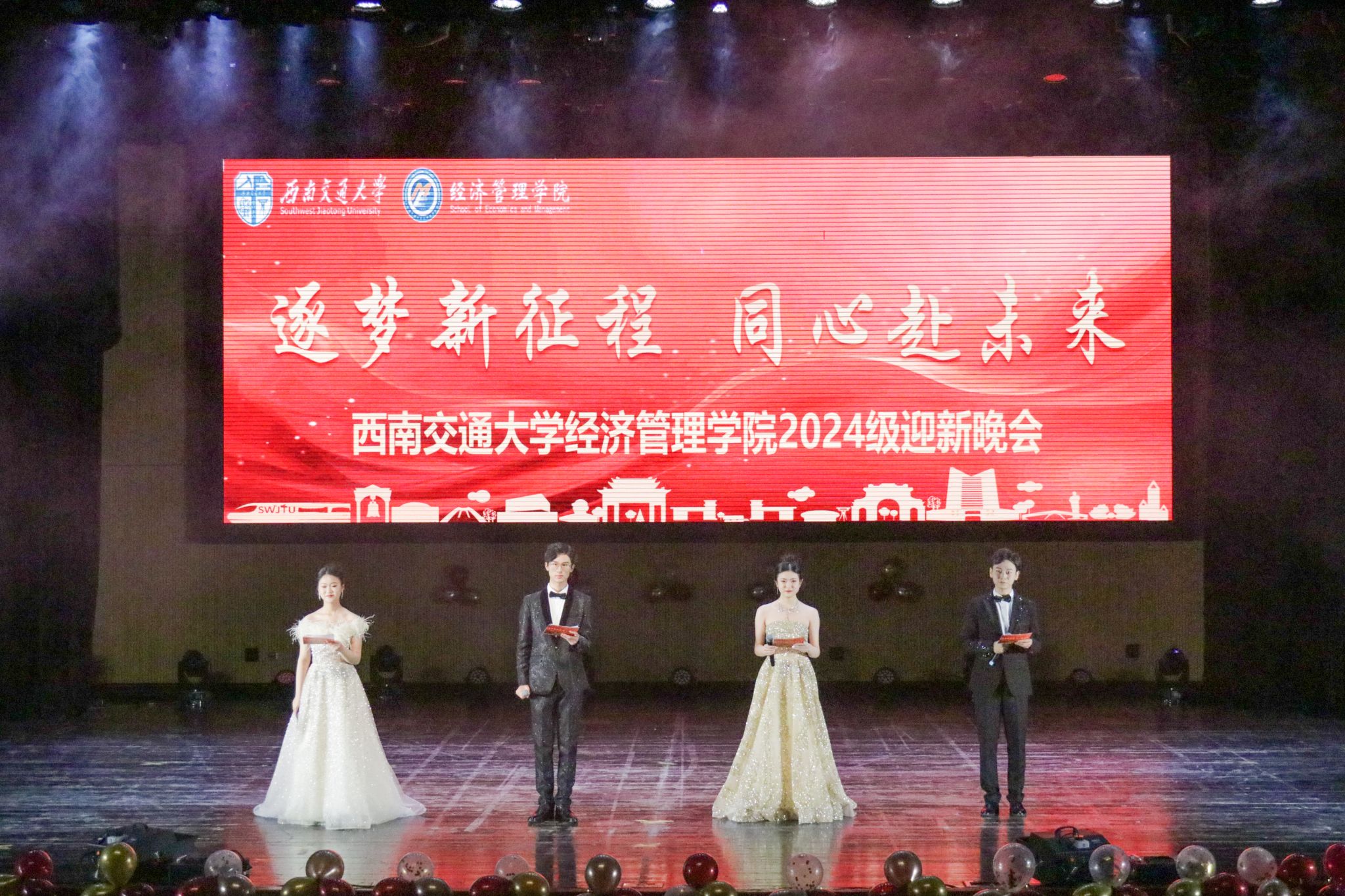 晚会在欢声笑语和热烈掌声中缓缓落下帷幕,而精彩的大学生活画卷正刚刚展开。这场晚会不仅是视听的盛宴,更是经管精神的热情传承。祝福2024级经管人经世致用、管智卓越。让我们一起,同心致远,共赴未来!