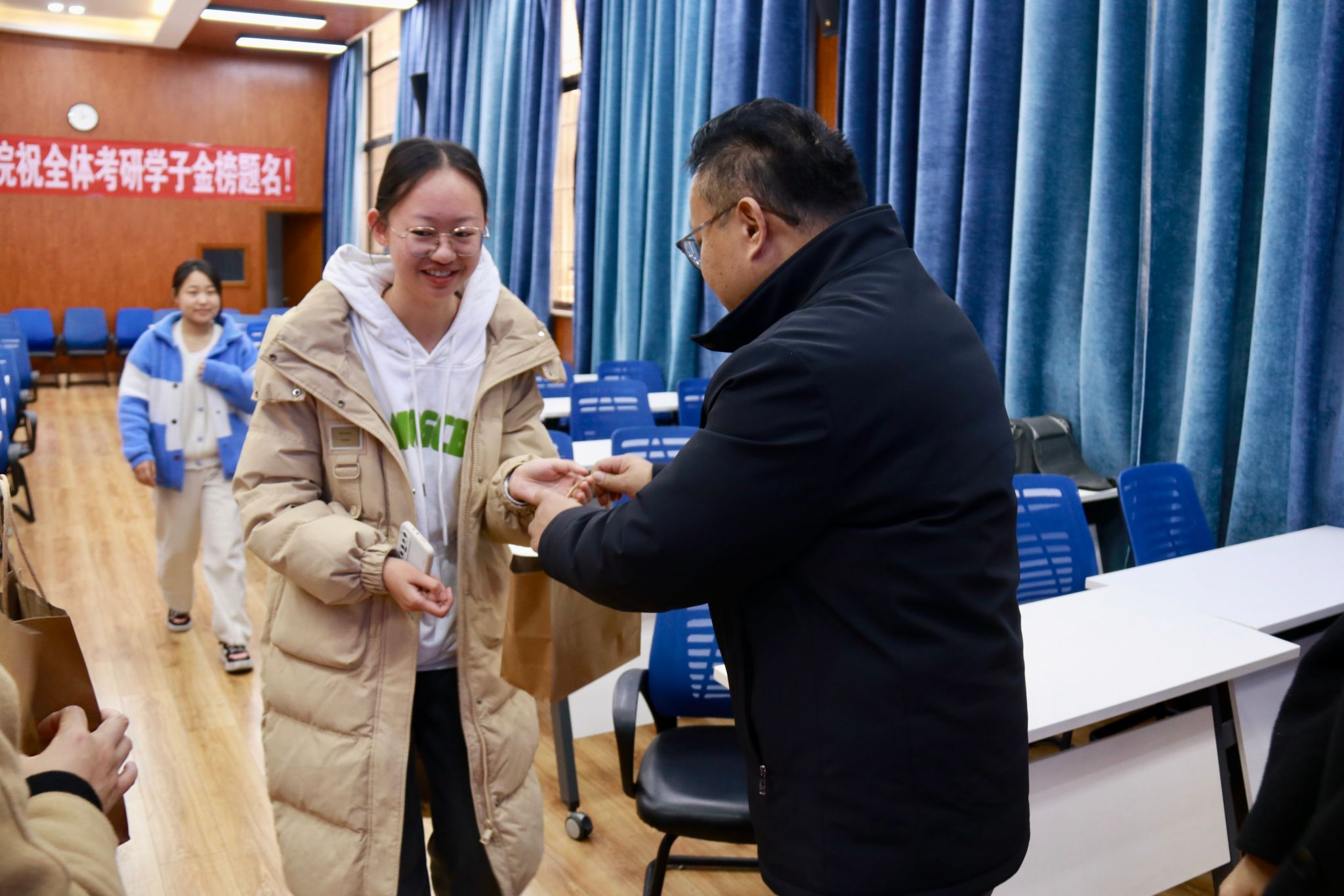 此次“为梦想喝彩”考研慰问活动,不仅为备考学生送去了实质性的帮助,更在精神上给予了他们极大的鼓舞,彰显了学院以学生为中心的教育理念,营造了积极向上的学习氛围,为即将踏上考研征途的学子们注入了强大的动力。相信在不久的将来,这些怀揣梦想的学子们都能一“研“为定,未来可期。