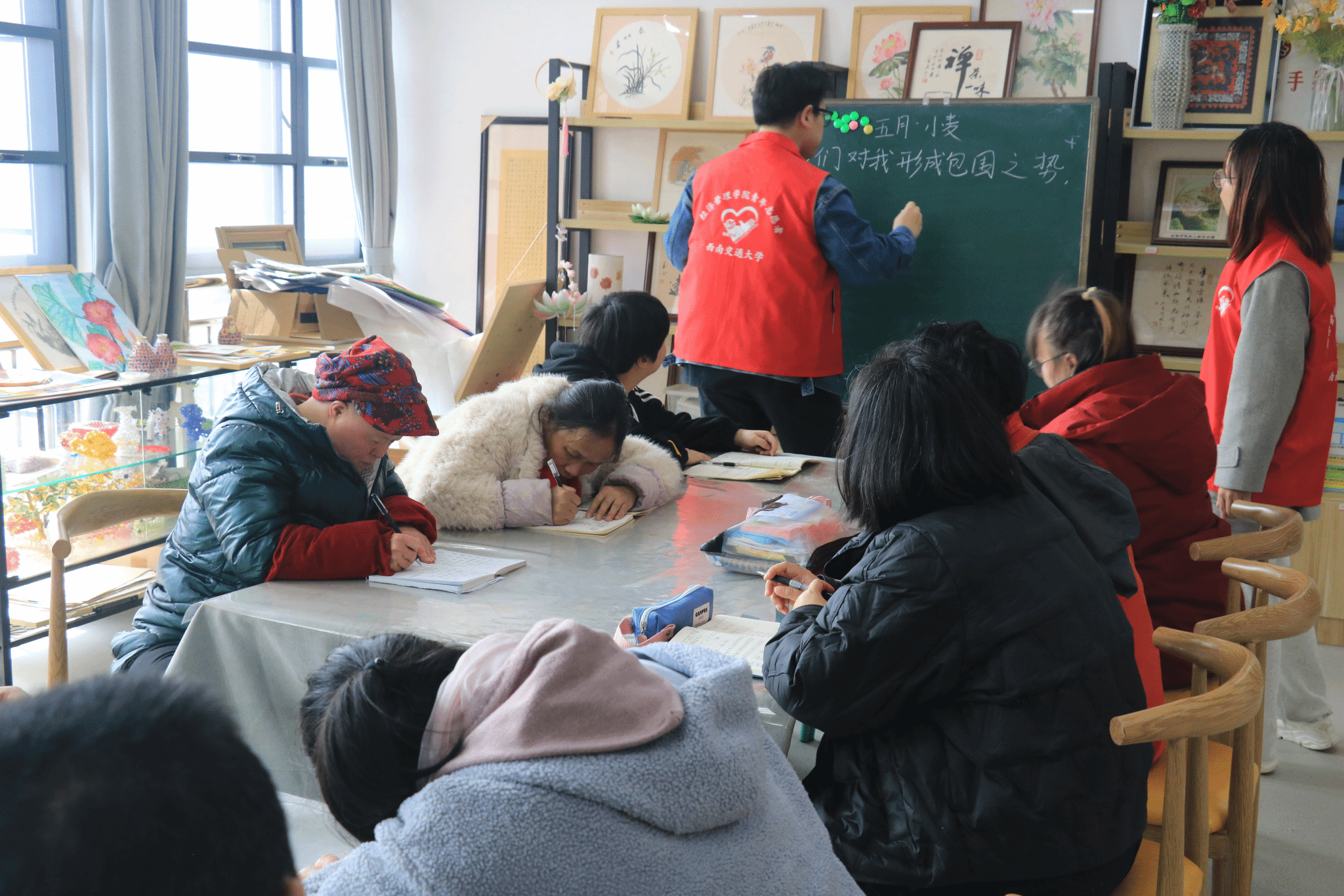 3月11日下午,志愿者们来到金牛区黄忠社区党群服务中心的阳光家园。在星光班,志愿者们耐心教授特殊儿童整理衣物等基础生活技能,并组织彩笔绘画活动,激发孩子们的动手能力;在成长班,通过教唱儿歌锻炼孩子们的语言表达能力,借助颜色卡片、实物展示以及“找颜色”游戏、季节衣物搭配活动,提升他们的认知水平;在职前班,以模仿大秀帮助学员锻炼身体协调性,通过比数字互动游戏增强他们的反应能力与团队协作能力。这些丰富多彩的活动,为阳光家园的“大朋友们”带来了知识与欢乐,在他们心中播撒下希望的种子。志愿者们纷纷表示,将持续关注并积极参与后续服务,为残障群体提供更多支持。